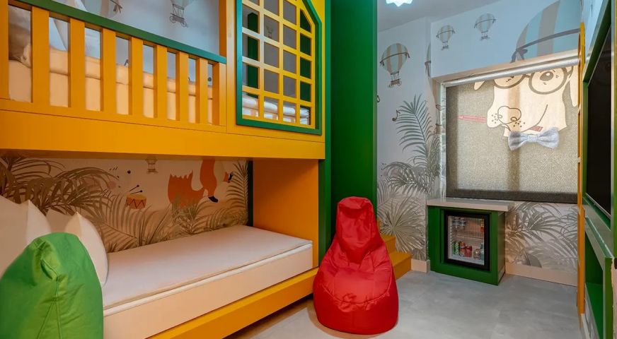 За децата: детски басейн, детски аквапарк, детска площадка, мини клуб (4-12г), тийн клуб (13 – 18г), мини диско, мини баскетбол, билярд, тенис на маса, детска анимация, стерилизатор за бебешко шише, детегледачка и детска количка – срещу заплащане.