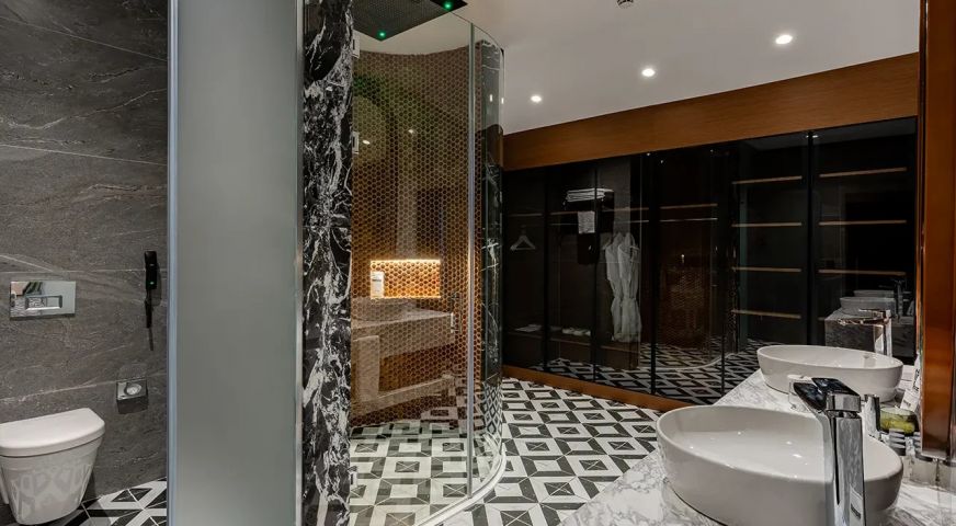 Всички стаи са оборудвани с климатик, телевизор, телефон, баня с душ, сешоар, сет за чай/кафе, минибар (безплатен), сейф (безплатен). Почистване на стаите и смяна на кърпите – всеки ден, смяна на спалното бельо – на всеки два дни.