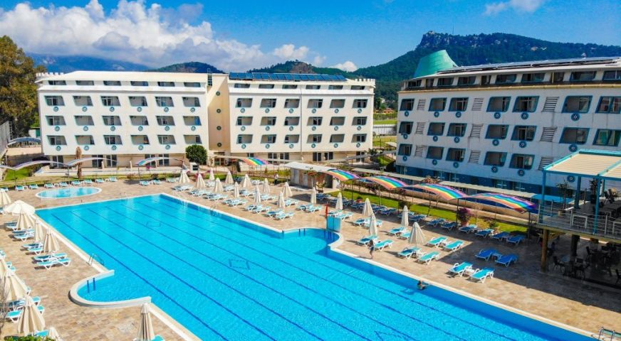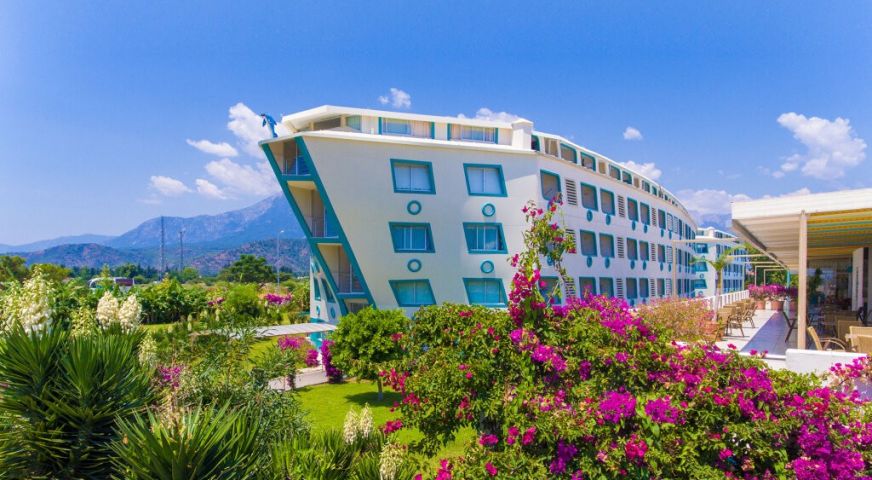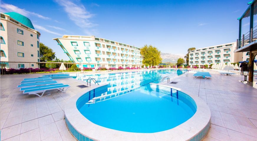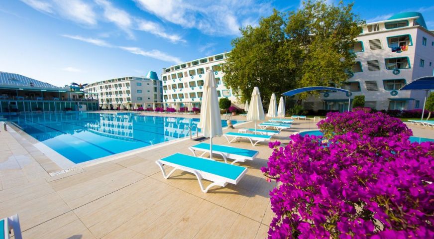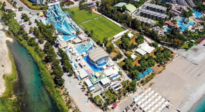 Територията на хотела е разделена от път (чрез подземен проход), на брега на морето има голяма зелена площ и голям аквапарк. Добра активна анимация за деца и възрастни. Препоръчва се за двойки и семейства с деца.