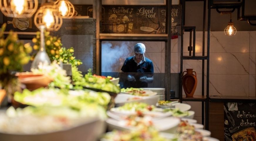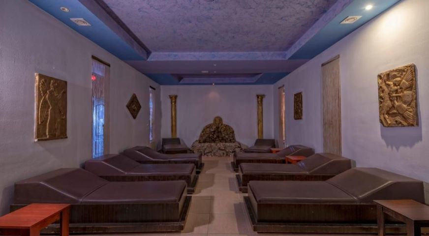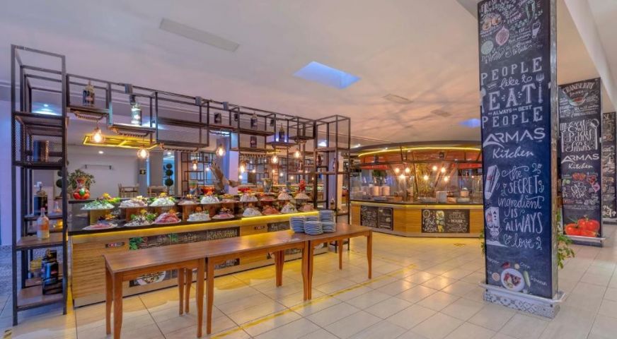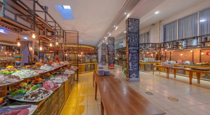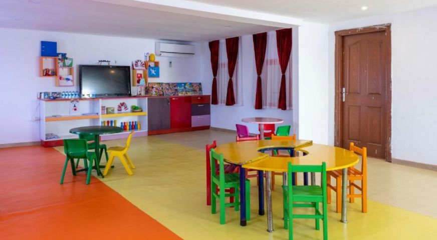 На територията: основен бюфет ресторант, 4 бара, 2 външни басейна, детска площадка, мини клуб за деца от 4 до 12 г.,билярд, тенис на маса, дартс, водно поло, спа център, водни спортове, интернет.