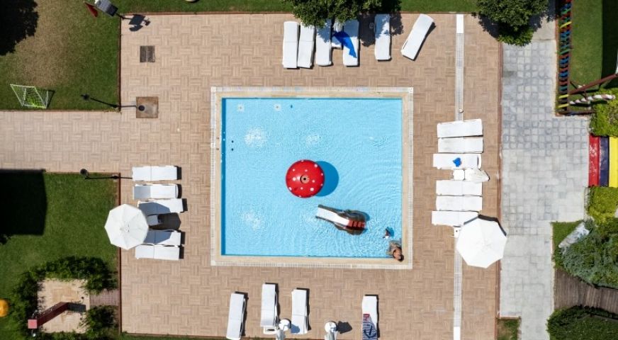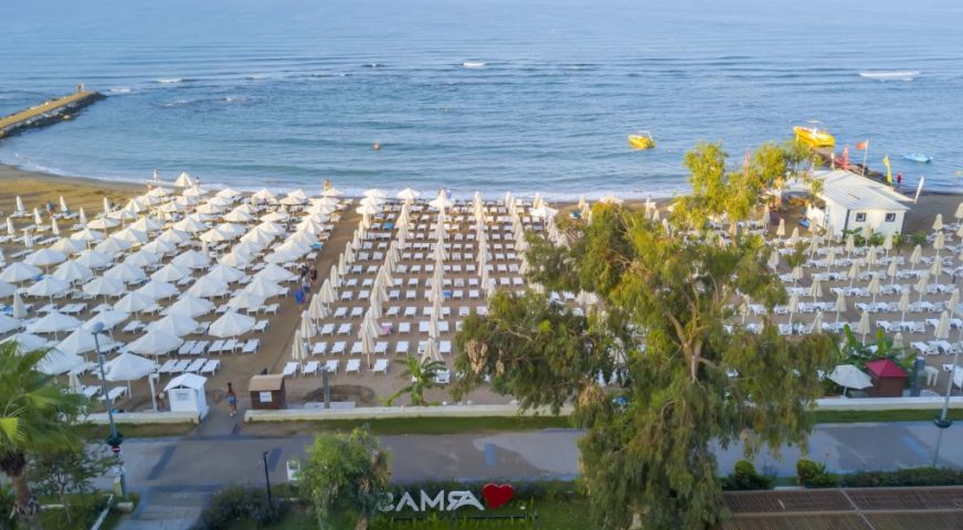 Плаж: собствен, пясъчен, на 300м от основната сграда. Чадъри, шезлонги и кърпи на плажа, както и при басейна - безплатно.