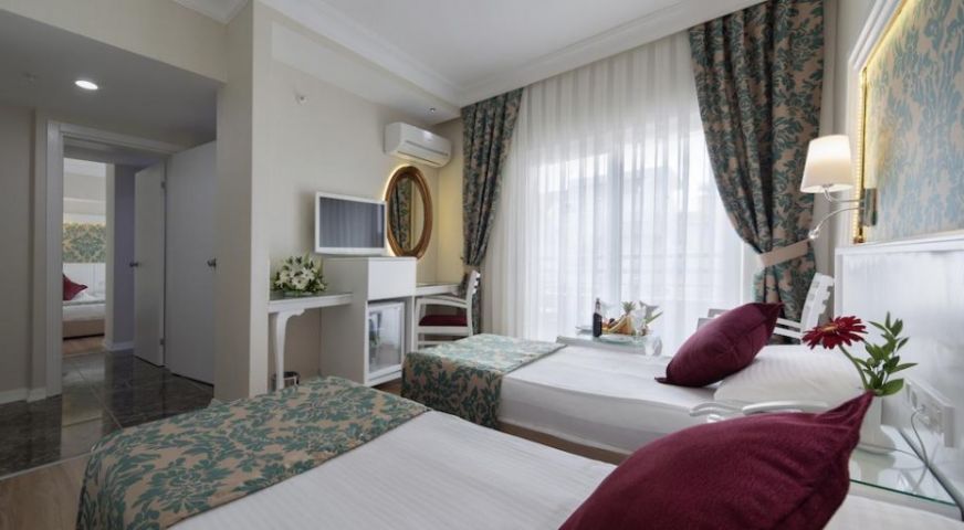 Хотелът разполага с общо 107 стаи, разположени в една основна сграда, от които 85 Standard room (16 м2), Child friendly стаи (в тях две деца се настаняват безплатно – 16 м2), 20 Connected room (32 м2), 2 Honeymoon room (16 м2). Всички стаи са оборудвани с климатик, телевизор, телефон, баня с душ/вана, сешоар, минибар (срещу заплащане), сейф (срещу заплащане). Почистване на стаите всеки ден - смяна на спалното бельо и кърпите - 2 пъти в седмицата.