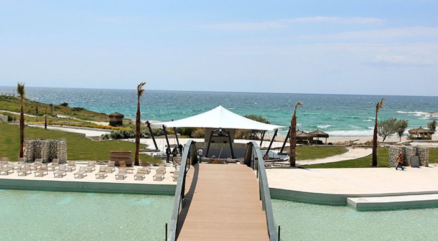 Хотелът се намира на 90 км от летище Измир, на 7 км от центъра на Алачатъ, на 17 км от центъра на Чешме, на 70 км от центъра на град Измир и на 90 км от летище Аднан Мендерес. Построен на площ от 80 966 m2, Разположен е в залив, заобиколен от очарователнатa природа на региона и уникалната красота на синьото на Егейско море. Просторен, стилен и удобен хотел, предлагащ всичко неоходимо за много моменти на спомени и незабравими мигове.