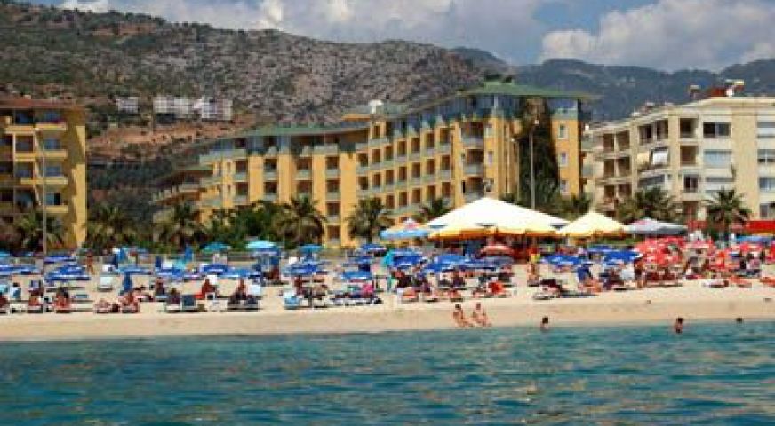 на 119 км. от летището на Анталия и на 1.5 км. от центъра на града Алания, на брега на морето