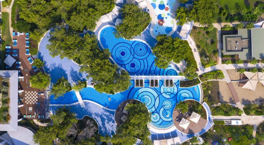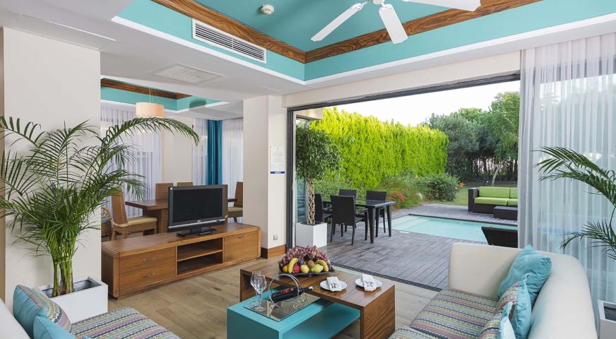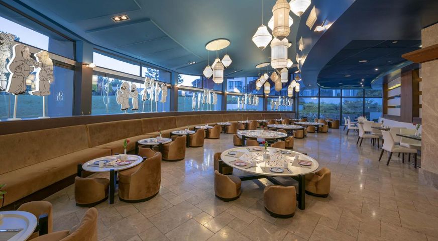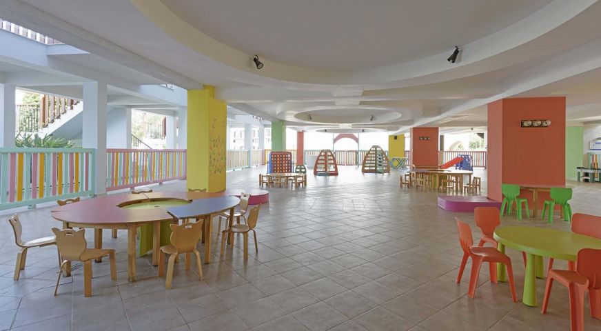 Основен ресторант, 3 а-ла-карт ресторанта (рибен, турски и италиански), 6 бара, външни басейни, японски басейн, вътрешен басейн, водни пързалки, СПА център, анимация, фитнес, турска баня, сауна, масажи, тенис корт, тенис на маса, водни спортове, пилатес, дартс, плажен волейбол, WI-FI, паркинг. За децата: мини клуб, мини диско, пяна парти, анимация. Плаж: собствен , пясъчен. Чадъри и шезлонги при басейна и плажа - безплатно.