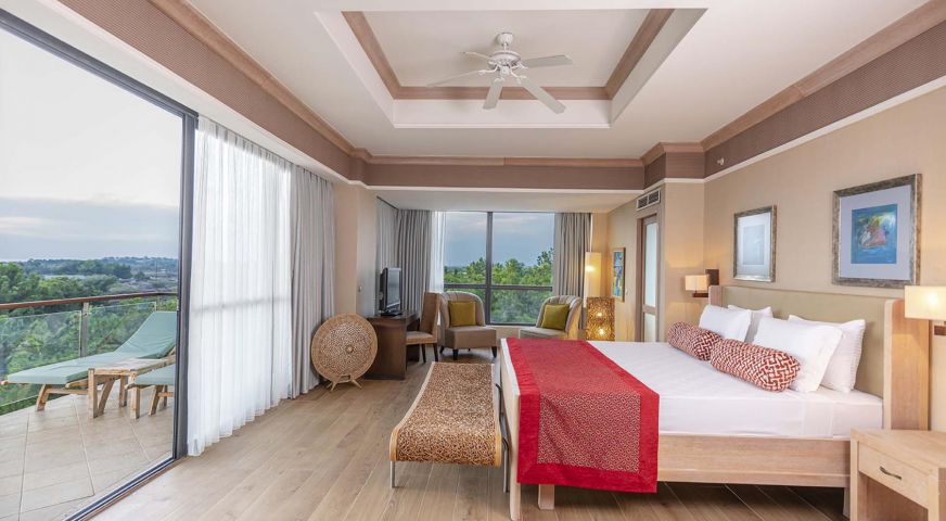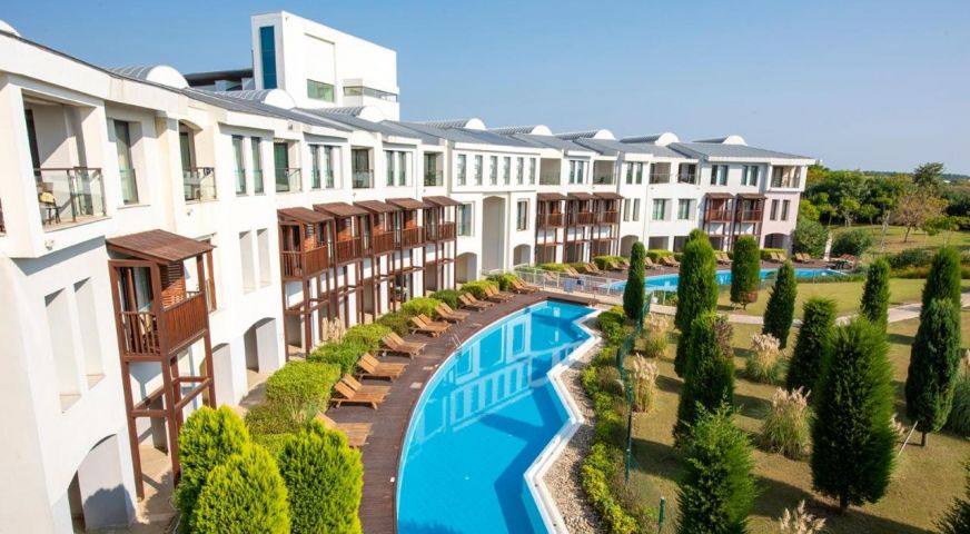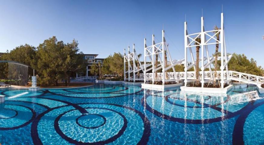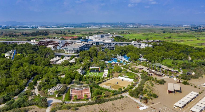 Хотелът се намира на 46 км. от международното летище в Анталия, на 54 км. от центъра на града, на брега на морето. Намира се в топ 100 на най-добрите GOLF хотели в света. Хотела е разположен на 1.000.000 m2, като 600 000 кв. м. са игрища за голф с гледка към плажната ивица.