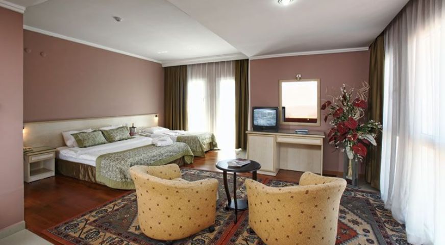 открит и закрит ресторант, 3 бара, 2 конферентни зали, хубава градина, открит и закрит басейн, водна пързалка, ТВ зала, здравен център, магазини, химическо чистене, фризьор, пералня, безжичен интернет, паркинг.