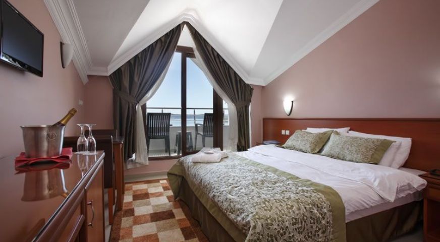 климатик, балкон, сателитна телевизия, директен телефон, мини бар, баня/душ, сешоар.