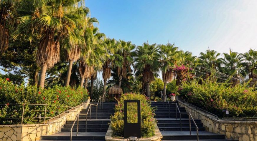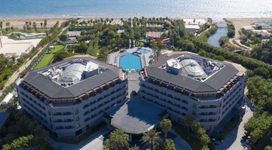 Хотелът се намира в село Кумкой, на 6 км от древния град Сиде, на морския бряг. Състои се от една 4-етажна сграда (4 асансьора). Гостите на хотела могат да използват територията и услугите на хотел Miramare Queen (с изключение на основния ресторант). Последна реновация 2020 година. Територия - 40 000 кв.м. Хотелът разполага с 218 стаи.