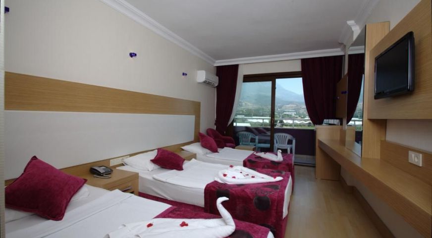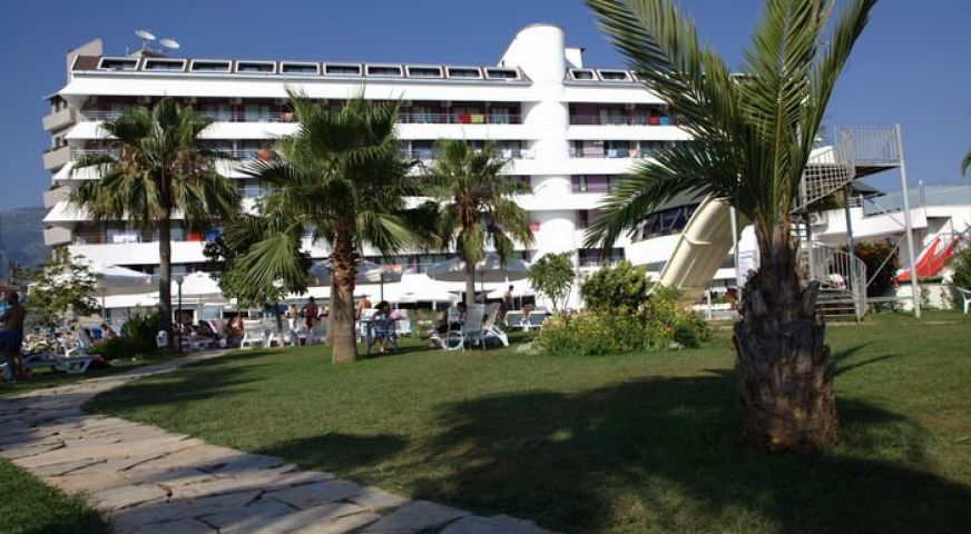 на 20 м от брега на морето, на 10 км от центъра на Алания, на 90 км от летище Анталия
