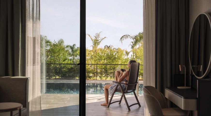 Хотелът предлага на своите гости 453 стаи, сред които стандартни / 30 кв.м. /, супериор / 40 кв.м. /, фамилни / 50 кв.м. /. Всички стаи са оборудвани с централен климатик, телевизия, телефон, баня с душ, сешоар, минибар, сейф, балкон, кетъл комплект за чай или кафе , безжичен интернет. Почистване на стаите – всеки ден, смяна на спалното бельо – 2 пъти седмично. Стаите са с ламинат или паркет !