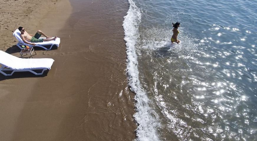 Собствен, пясък. Пирс. Бар на плажа: безплатно. На басейна и на плажа: шезлонги, матраци (само на плажа) - безплатно. Плажни кърпи - безплатно.