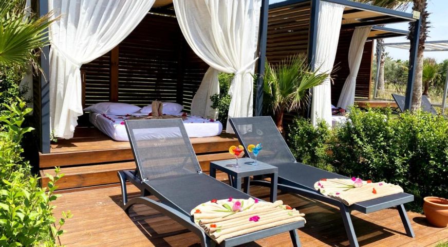 За младоженци: Романтична декорация на стаята, плодове, десерт, бутилка пенливо вино, 1 закуска в стаята в предпочитан ден, 1 безплатно посещение на а-ла-карт ресторант, плажна кабана (при наличност).