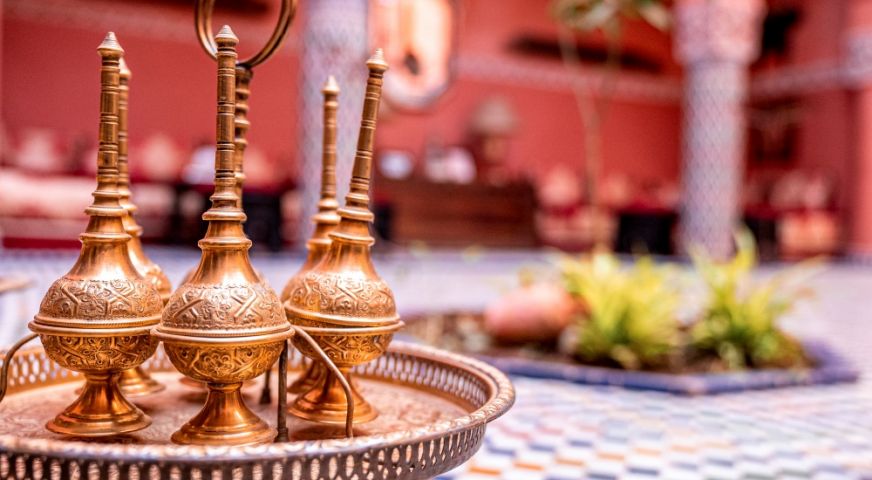 Закуска в хотела. Разглеждане на Маракеш – хармонично съчетание от исторически забележителности, културно богатство и модерни удобства. Той пленява посетителите си с цветове, ухания и мелодии, превръщайки всяко посещение в незабравимо изживяване. Основан е през 1070 г. от династията на Алморавидите и бързо се превръща в значим политически, икономически и културен център. В Маракеш има по нещо за всекиго, независимо дали ще се разхождате из многолюдните пазари на медината или ще се наслаждавате на спокойствието на градините на Мажорел. Историческият център на Маракеш е включен в списъка на ЮНЕСКО. По тесните улички и суковете ще откриете изобилие от традиционни марокански продукти и изделия като подправки, керамика, текстил и бижута. Маракеш е рай за любителите на вкусните изкушения, предлага разнообразие от марокански ястия като тагин, кускус, харира и различни сладкиши, а местните ресторанти и улични търговци ще ви предложат автентични кулинарни изживявания.